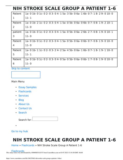 In the realm of healthcare, the Initial NIH Stroke Scale (NIHSS) serves as a critical diagnostic tool, meticulously designed to assess the severity of a stroke's impact on an individual's neurological function. Recognizing the paramount importance of swift and accurate evaluation in the aftermath of a stroke, this article embarks on a comprehensive exploration of the NIHSS. Delving into its origins, structure, and clinical application, the ensuing discussion aims to elucidate the intricacies surrounding this standardized neurological assessment. By shedding light on the intricacies of the NIHSS, we endeavor to foster a deeper understanding of its role within the healthcare landscape, ultimately contributing to enhanced stroke care and patient outcomes.